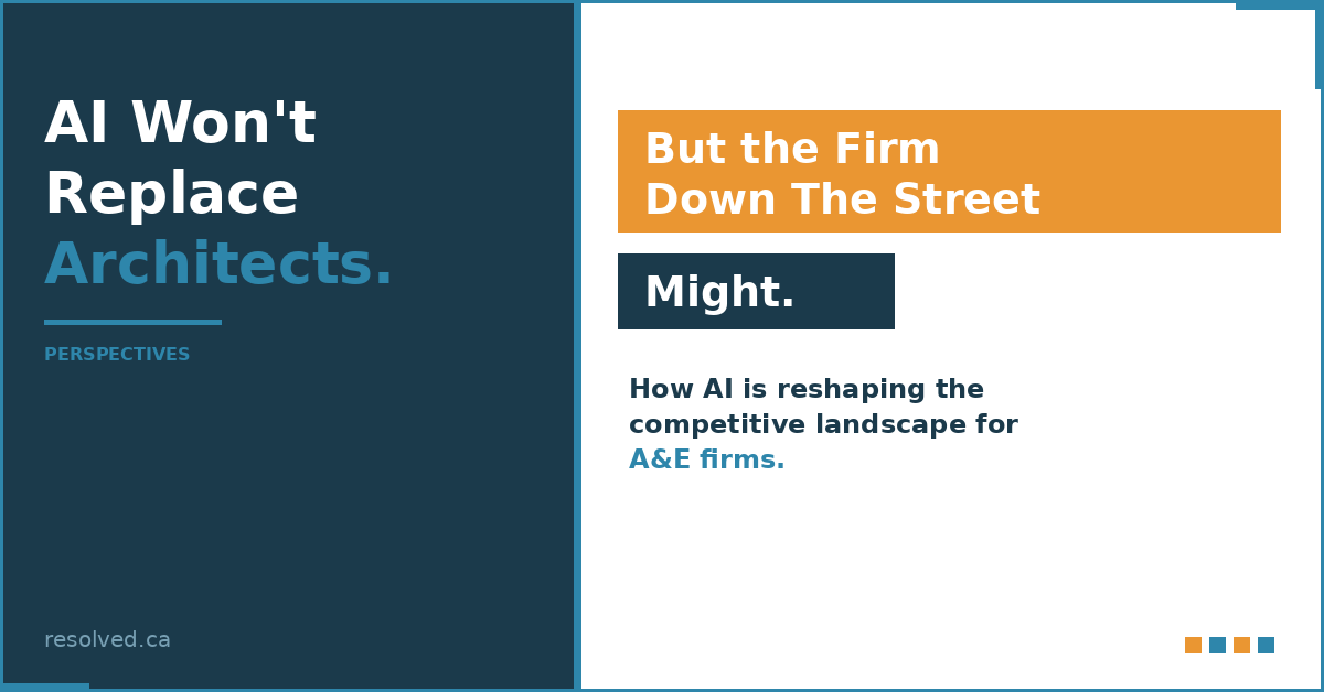 At Resolved, we work exclusively with architecture, engineering, and construction firms. It’s our entire focus. We understand the tools you use, the compliance requirements you navigate, and the project delivery workflows that drive your business. If you’re starting to think about what AI means for your firm’s future and where to begin, we’d welcome that conversation.